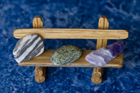 Neu sind nun auch Holzbänke zu haben, die mit trovalisierten/polierten "Riverstones" geschmückt werden können. Man kann die Holzbänke aber auch mit anderen Gegenständen schmücken und so tolle Dekorationen kreieren.
